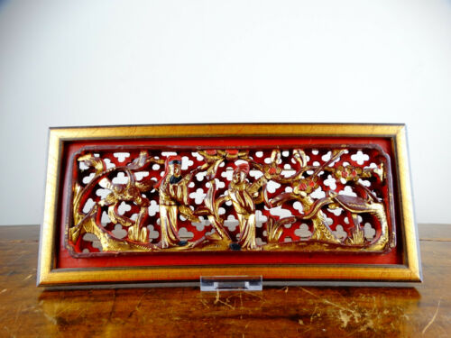 Title (ebay affiliate link): Antique Chinese Gilt Wood Furniture Panel Carved Figures & Flowers Qing Dynasty