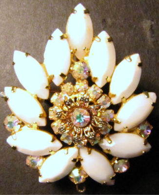 VINTAGE MILK GLASS & AURORA BOREALIS BROOCH / PENDANT