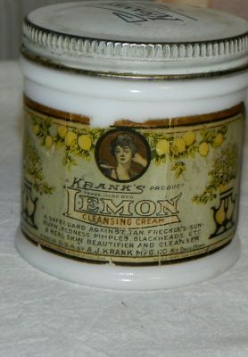 1918 KRANKS LEMON CLEANSING CREAM JAR MILK GLASS #N59