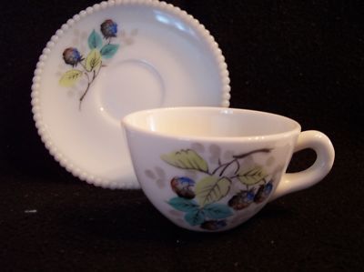 Westmoreland Beaded Milk Glass Tea Cup & Saucer, Berry