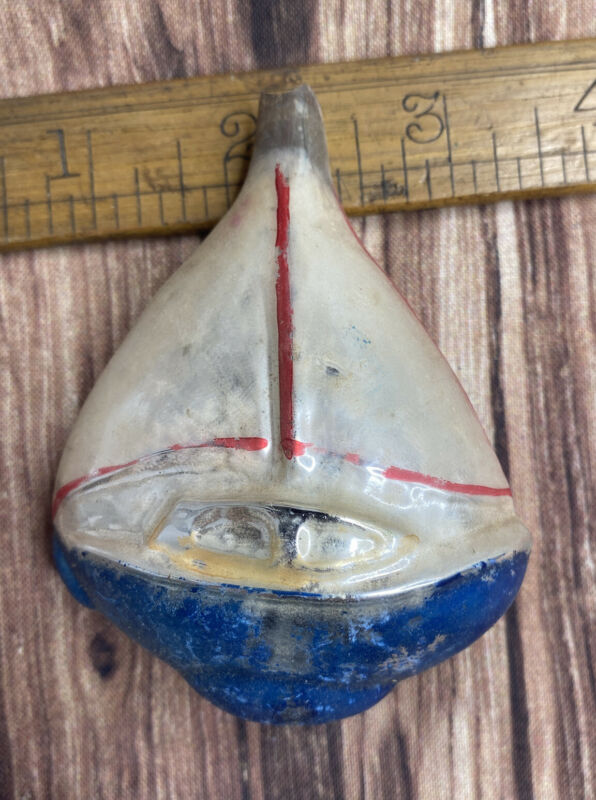 German Antique Glass Boat Vintage Christmas Ornament
