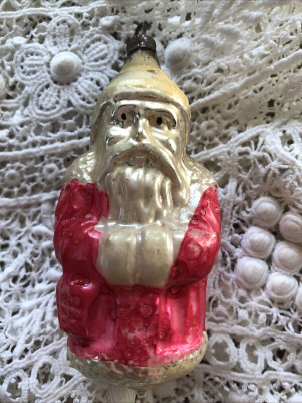 Vintage Glass Christmas Santa Tree Ornament