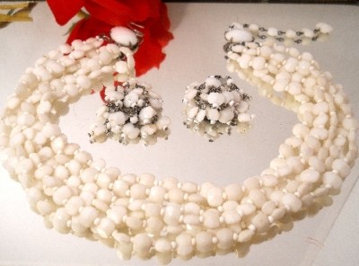 VINT W. GERMANY 6 STRAND MILKGLASS BEADED NECKLACE SET