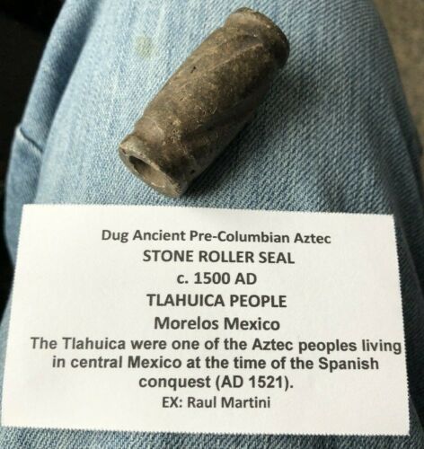 Title (ebay affiliate link): Ancient Pre-Columbian Stone Roller Seal Tlahuica People 1500 AD