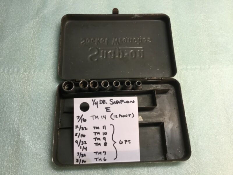 Title (ebay affiliate link): Vintage Snap On E 1/4in drive 7 sockets and box