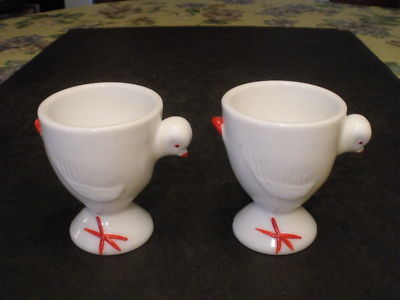 2 Old Westmoreland Milk Glass "Chick" Egg Cups NR
