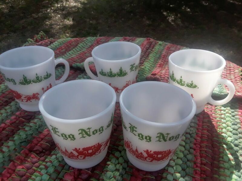 Title (ebay affiliate link): Vintage Hazel Atlas Milk Glass Christmas EggNog 5 Mugs Cups