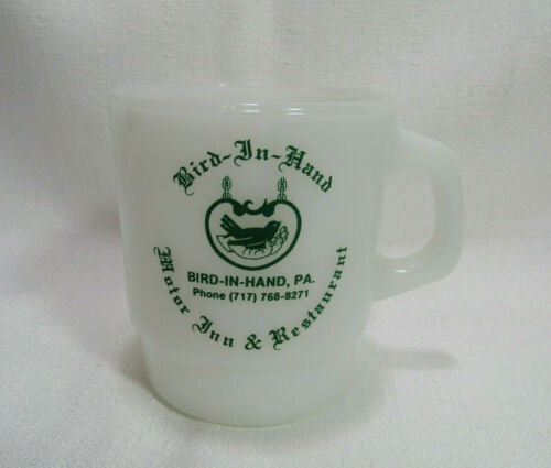 Title (ebay affiliate link): Anchor Hocking Vintage White Milk Glass BIRD IN HAND Motor Inn & Restaurant Mug