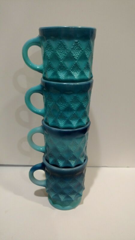 ~Four Fire King Anchor Hocking Blue Mugs Kimberly