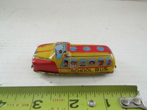 VINTAGE TIN LITHO TOY CAR FRICTION POWER 3 INCHES MADE IN JAPAN SCHOOL BUS