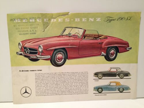 Title (ebay affiliate link): MERCEDES BENZ TYPE 190SL ORIGINAL SALES BROCHURE PD8047 c LATE 1950''s