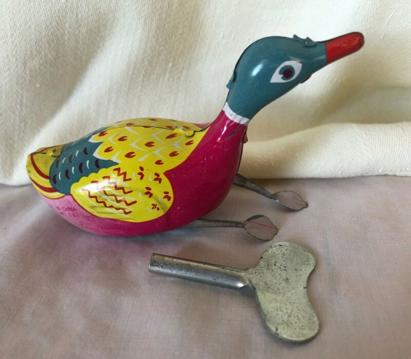 Title (ebay affiliate link): Vintage Tin Litho China Clockwork MS042 Swimming Duck Toy Original Box & Key