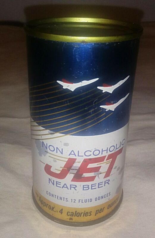 Title (ebay affiliate link): NICE! Jet Non Alcoholic Near Beer 12oz. Flat Top Can Bottom Opened