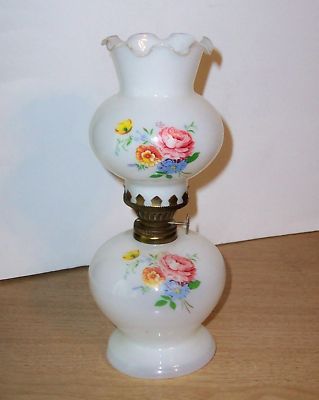 Minature Kerosene Oil Lamp -WHITE MILK GLASS-