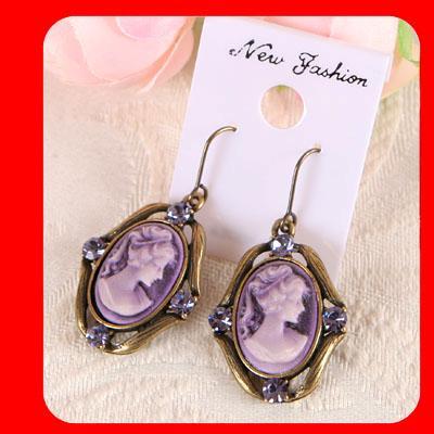 CAMEO Earrings Vintage antique St Crystal Hoop Purple