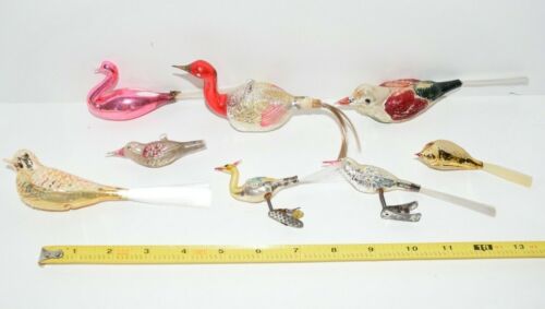 8 Antique Mercury glass BIRDS Spring Clip CHRISTMAS ORNAMENTS Germany GLASS LOOP