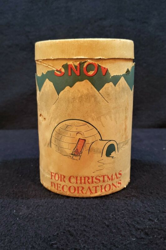 Title (ebay affiliate link): Vintage Mica CHRISTMAS SNOW & RARE Cylindrical Box w/ Igloo & Arctic Design