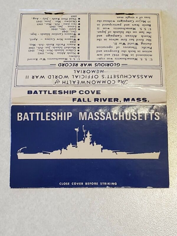 Vintage Navy Battleship Massachusetts Full Matchbook Fall River Mass