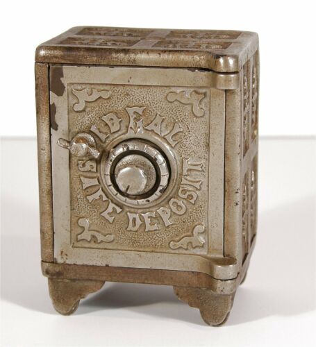 Title (ebay affiliate link): ca1890s CAST IRON IDEAL SAFE DEPOSIT COMBINATION FLOOR SAFE FIGURAL STILL BANK