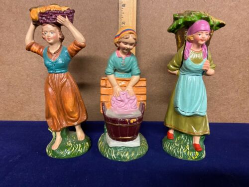 ANTIQUE ~ VINTAGE ~ ORIGINAL ~ ITALY ~ NATIVITY FIGURES ~ 3 WORKING WOMEN LOT