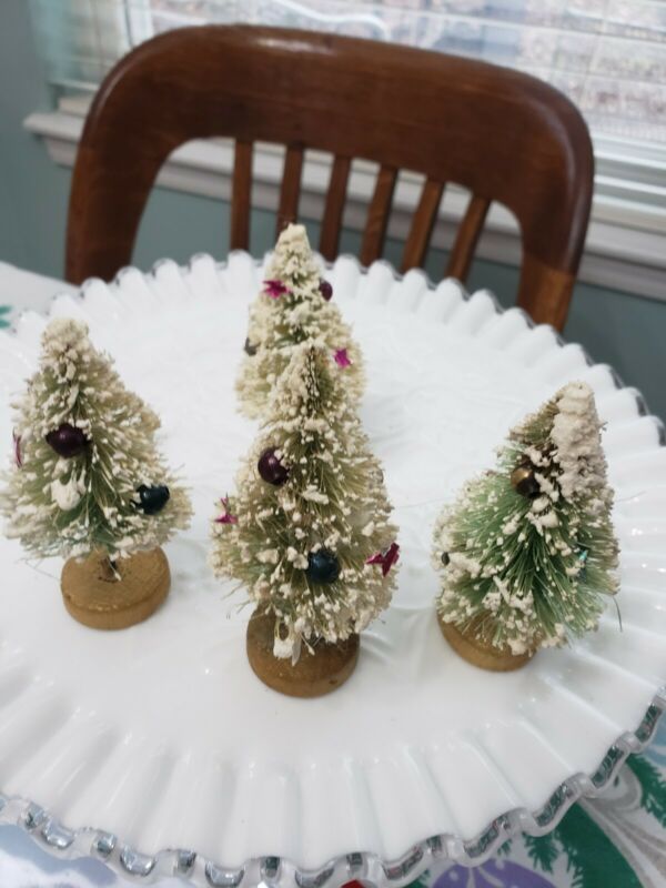 Title (ebay affiliate link): Vintage Lot Bottle Brush Flocked Decorated Trees 4