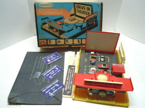 Title (ebay affiliate link): 1954 REMCO EXCELLENT MOVIELAND DRIVE IN, BOX, ALL CARS, FILM, BILLBOARDS. WORKS
