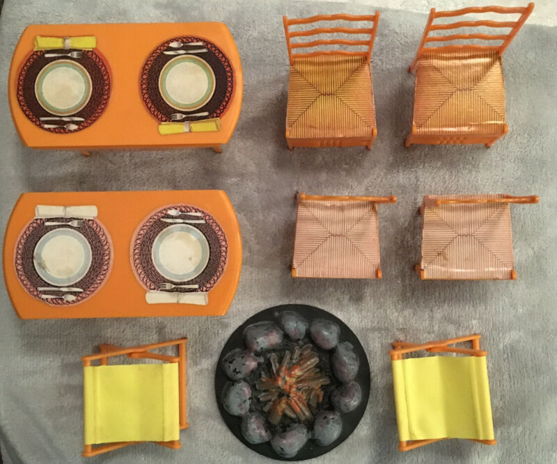 Title (ebay affiliate link): Vintage 1970s Barbie Furniture Drop Leaf Tables And Chairs And Campfire