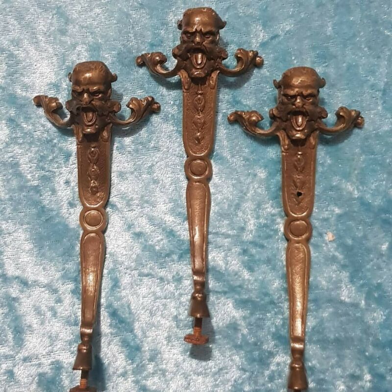 Title (ebay affiliate link): ANTIQUE GOTHIC REVIVAL ''DEVIL HEADS'' BRONZE SET OF FURNITURE MOUNTS .C.1840 .nr.