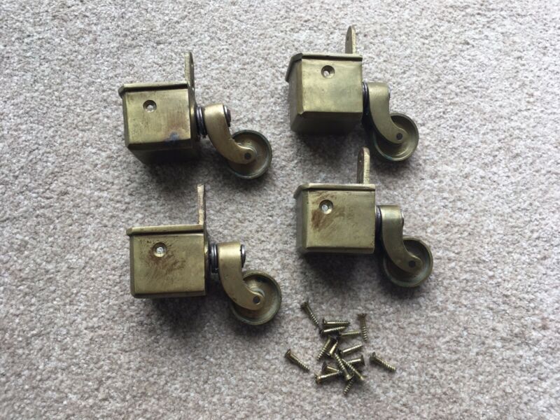 Vintage Brass Furniture Castors Trolley Wheels Antique Old Hardware x4
