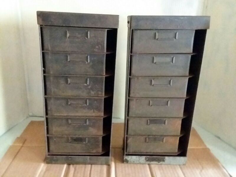 2 VTG BACHELDER Industrial Metal 6 Drawer Small Parts Cabints Side Swing Drawers