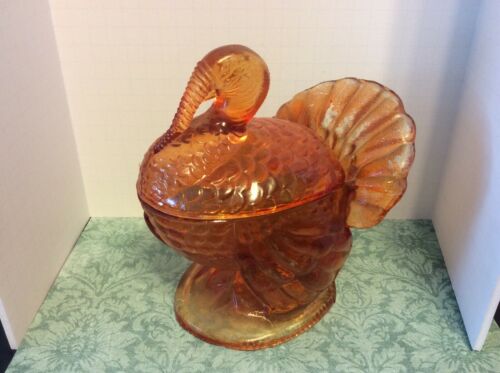 Title (ebay affiliate link): BEAUTIFUL VINTAGE AMBER GLASS COVER TURKEY BOWL FOR NUTS, CANDY OR GRAVY