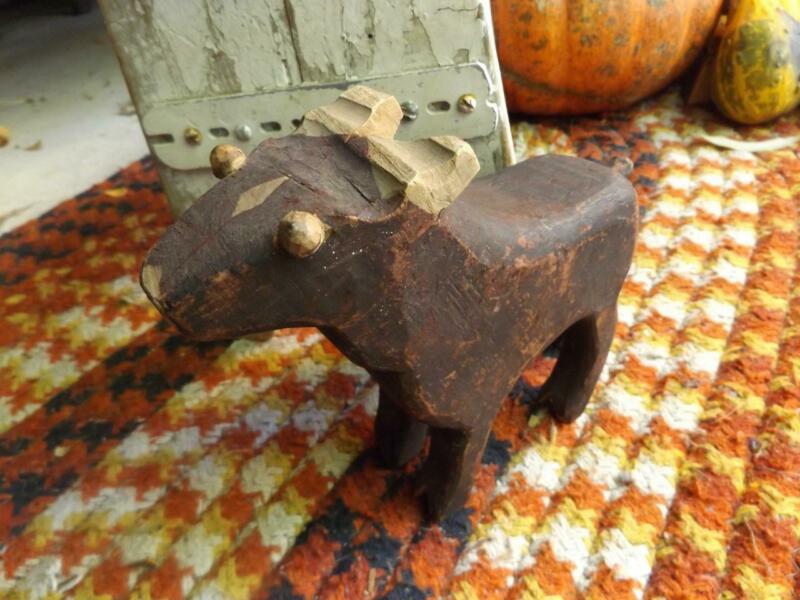 Old Rustic Primitive Vintage Folk Art Hand Carved Wood Moose GREAT Patina!