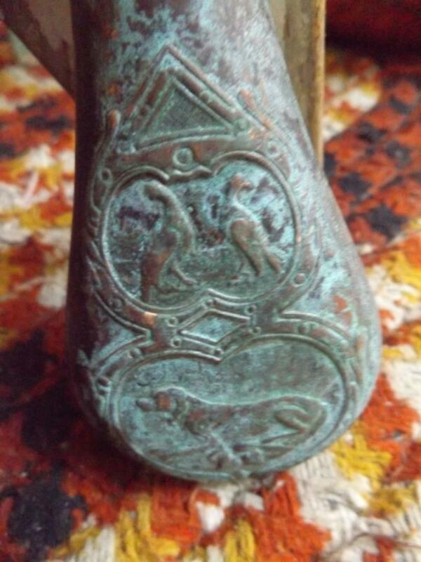 Title (ebay affiliate link): Rustic Primitive Vintage Gun Powder Flask Hunting Dogs & Birds P Mark PATINA