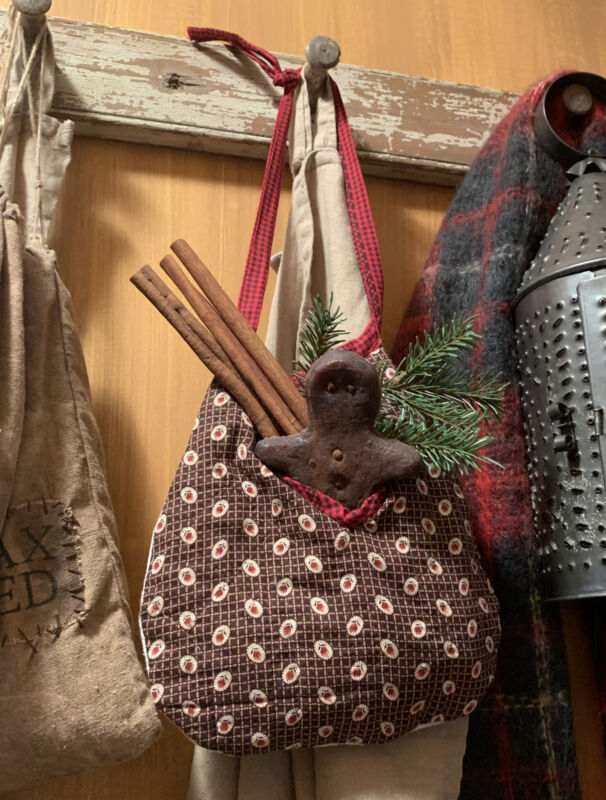 Title (ebay affiliate link): Sewing Pocket From Early Brown/ Red Calico Very Versatile Christmas Display