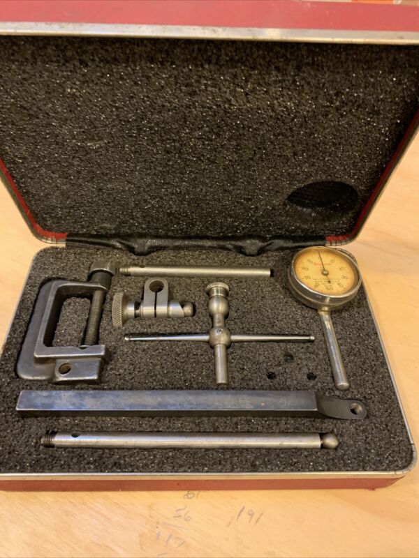 Title (ebay affiliate link): Vintage Starrett no.196 dial surface indicator gauge set kit