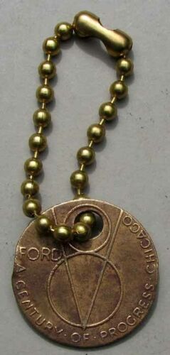 RARE ORIGINAL BRONZE 1934 FORD V8 EXPOSITION KEYCHAIN CHICAGO WORLDS FAIR #G526