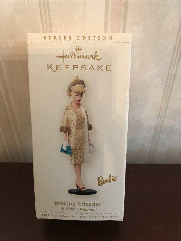 Title (ebay affiliate link): 2006 Hallmark Evening Splendor Blond Barbie Ornament, Thirteenth In Series NRFB!