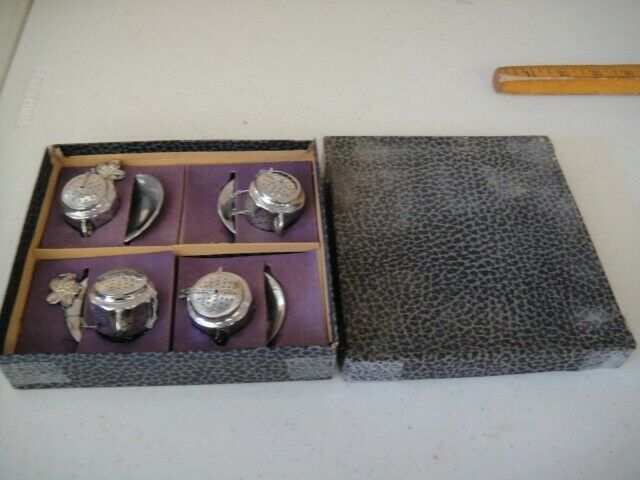 Vintage Tea Strainer Steeper Infuser Occupied Japan Set MIB Figural Teapot