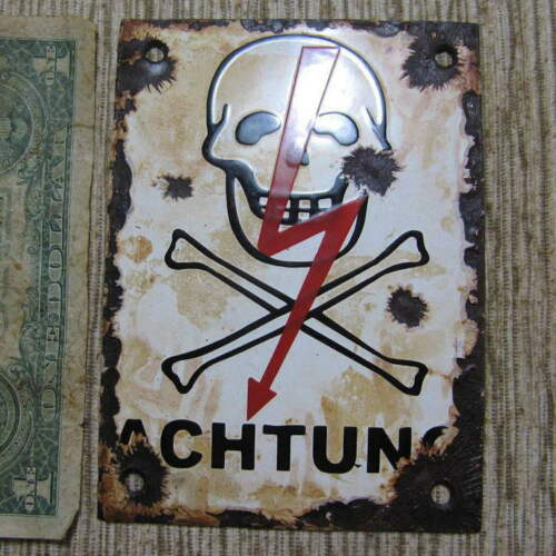 Title (ebay affiliate link): 100% ORIGINAL - Porcelain Sign 1939-1945, WWII, Danger, Skull & Crossbones No 37