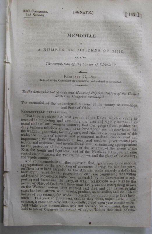 Title (ebay affiliate link): Original Senate Doc 1844 Cleveland Ohio Harbor Cuyahoga Great Lakes Vessels