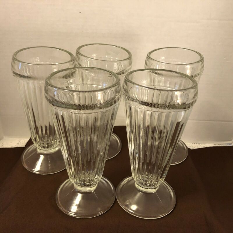 5 Vintage Ribbed Ice Cream Soda Fountain Shop / Milk Shake Ice Cream Glasses