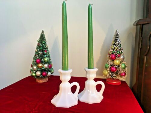 Title (ebay affiliate link): 1960''s Vintage Pair Candle Holders White Milk Glass Handled Octagon 4.5" In Box