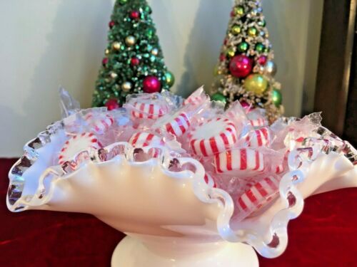 Vintage 1950''s Fenton Art Glass Silver Crest Candy Centerpiece Bowl
