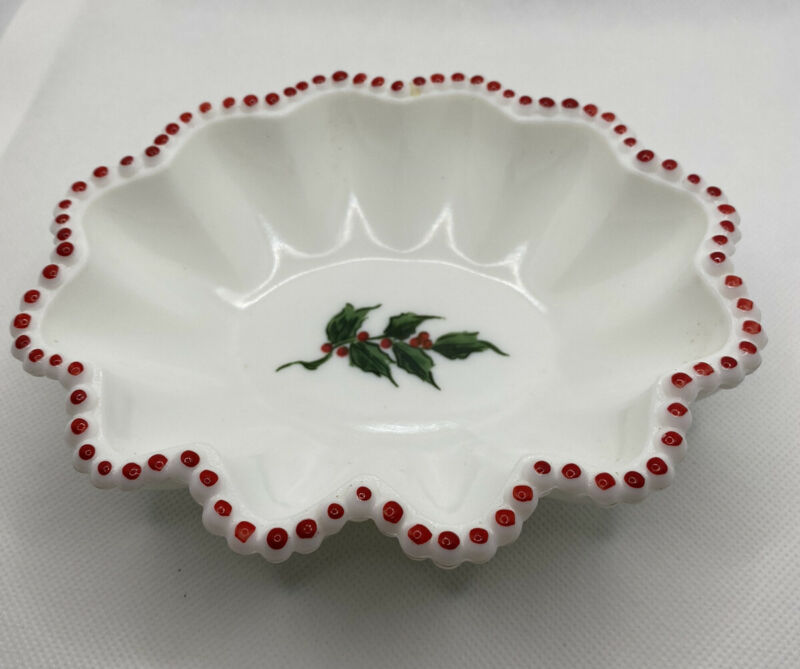 Vintage Christmas Westmoreland Milk Glass Holly Trinket/ Candy Dish
