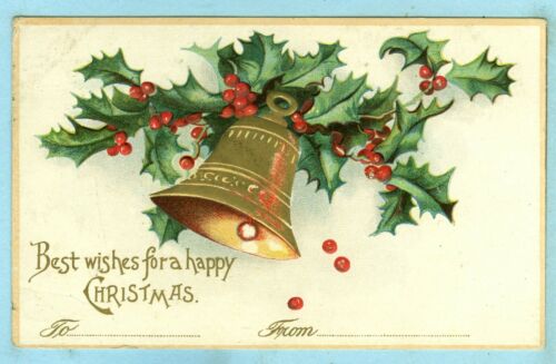 Title (ebay affiliate link): Embossed, "Best wishes for a happy Christmas", Fill in "To..From,," Bell & Holly