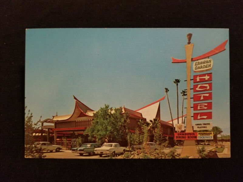 Title (ebay affiliate link): Palm Desert CA California Postcard Erawan Garden Hotel Roadside Old Cars Autos