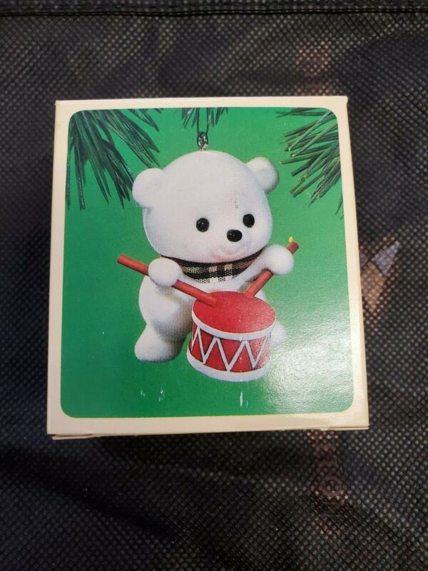 Title (ebay affiliate link): Hallmark Ornaments - White teddy bear with drum and Triple Dippin!