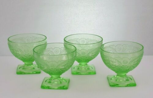 Depression Glass Indiana Glass Co. "Horseshoe" Green Uranium Glass Sherbets (4)