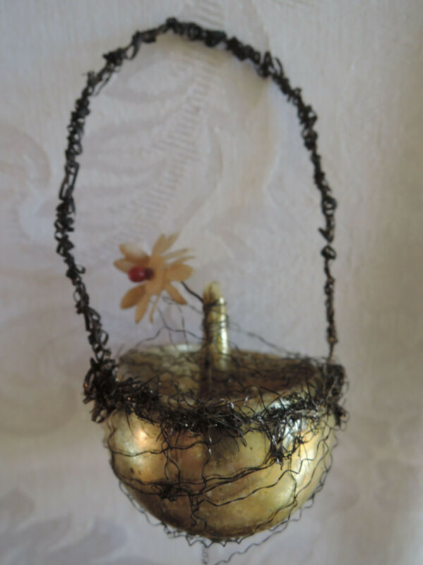 Title (ebay affiliate link): delicate silver wire-wrapped Victorian German ornament, basket with paper flower