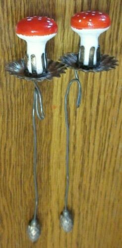 Title (ebay affiliate link): 2 Antique Christmas Tree Candle Holders - Spun Cotton Mushrooms & Acorn Weights